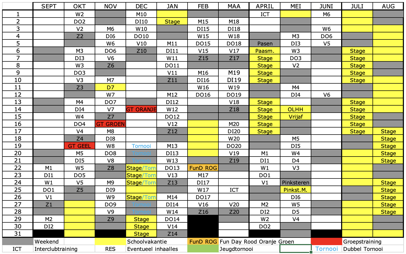 Volg hier de belangrijke data lessen - kampen - tornooien